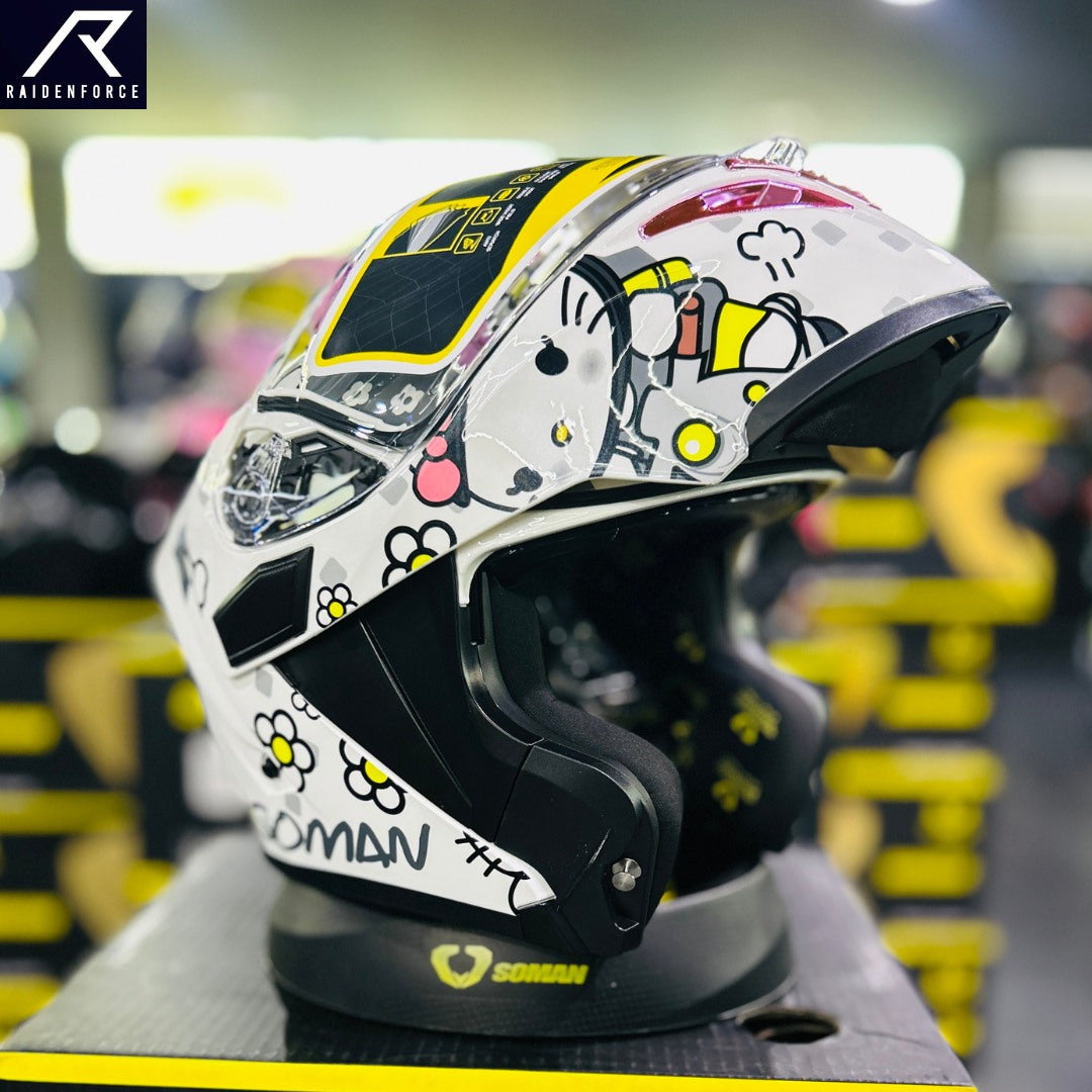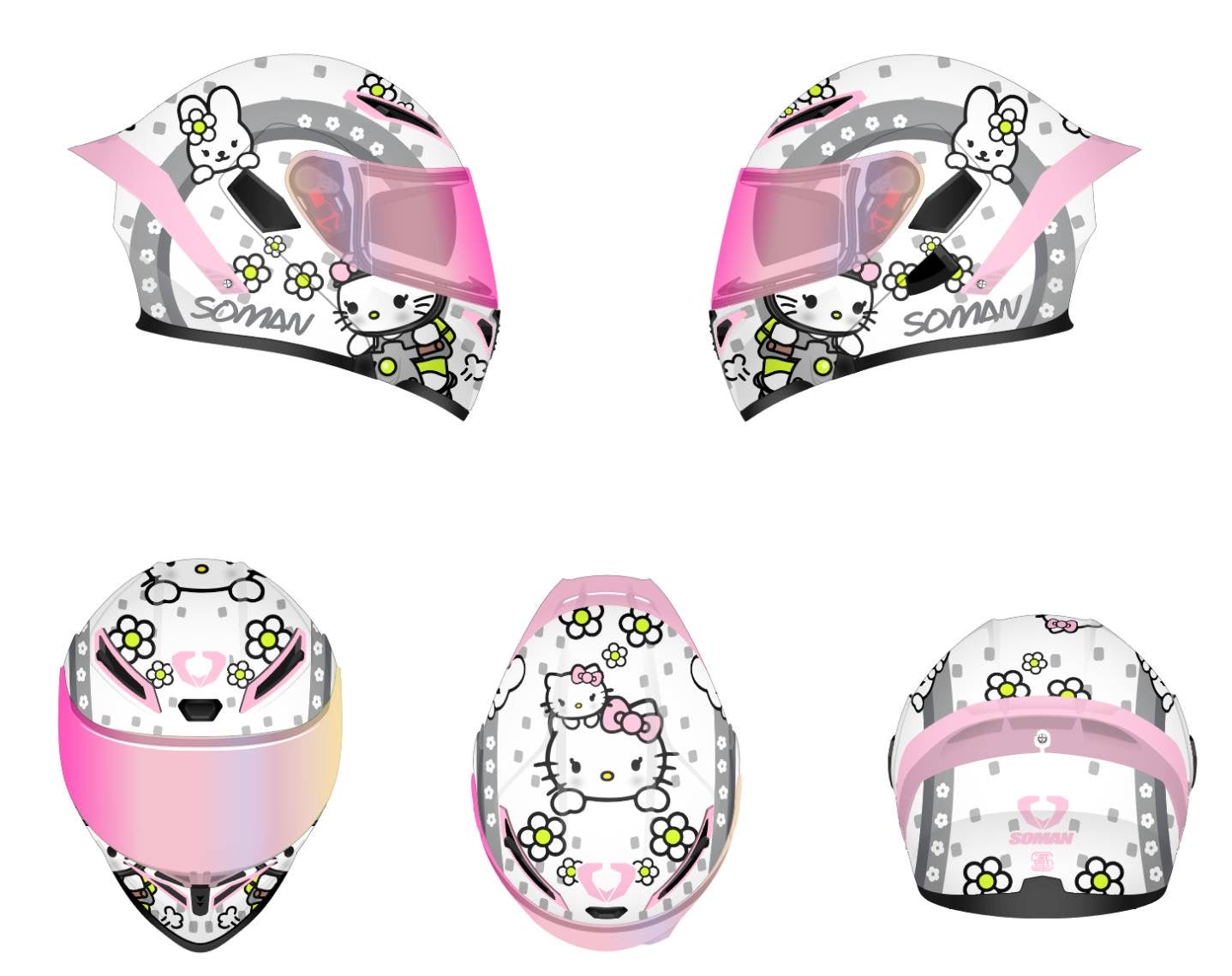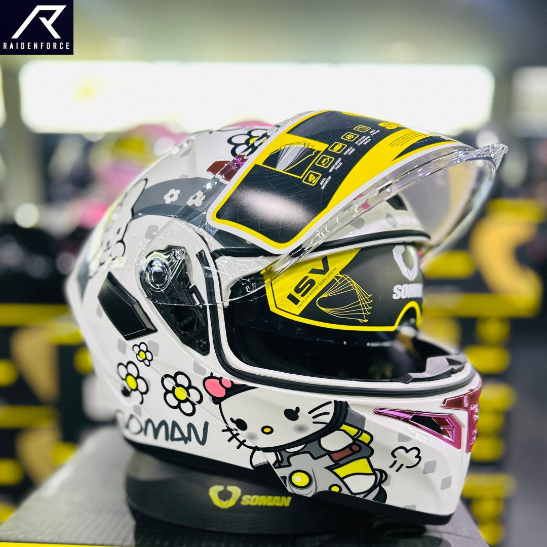 หมวกกันน็อค SOMAN - SM955 Cute Cat Pro ขาว/ชมพู