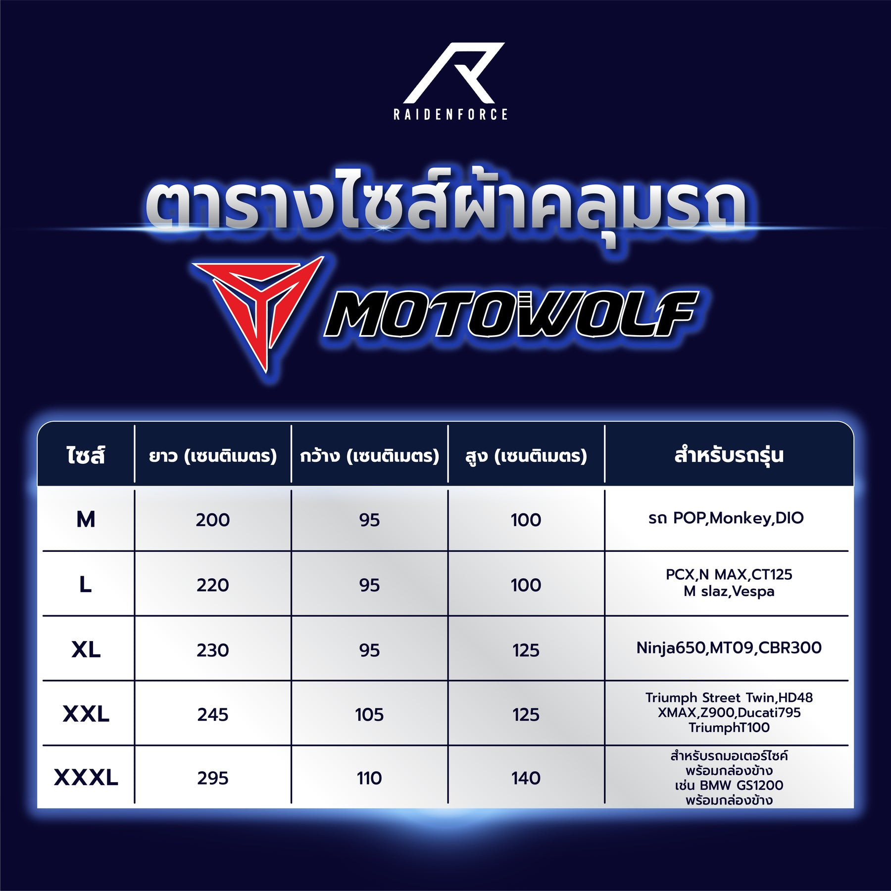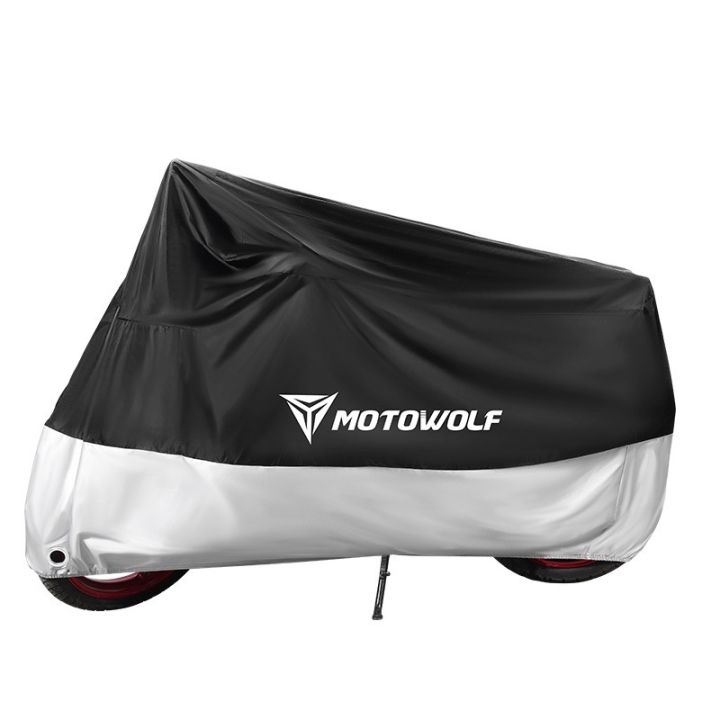 MOTOWOLF MDL 0802B แบบผ้า 190T อย่างหนา ผ้าคลุมรถกันแดด กันฝนได้ดี มีช่องสำหรับล็อคล้อ