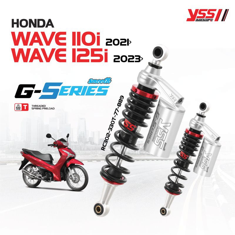 โช้ค YSS G-Series Honda Wave110i'21/Wave125i'23 สี ดำ/เงิน Rc302-330T-77-889