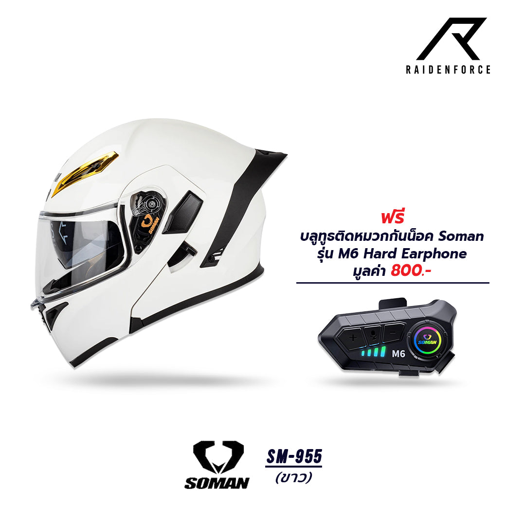หมวกกันน็อคยกคาง SOMAN - SM955 สีขาว