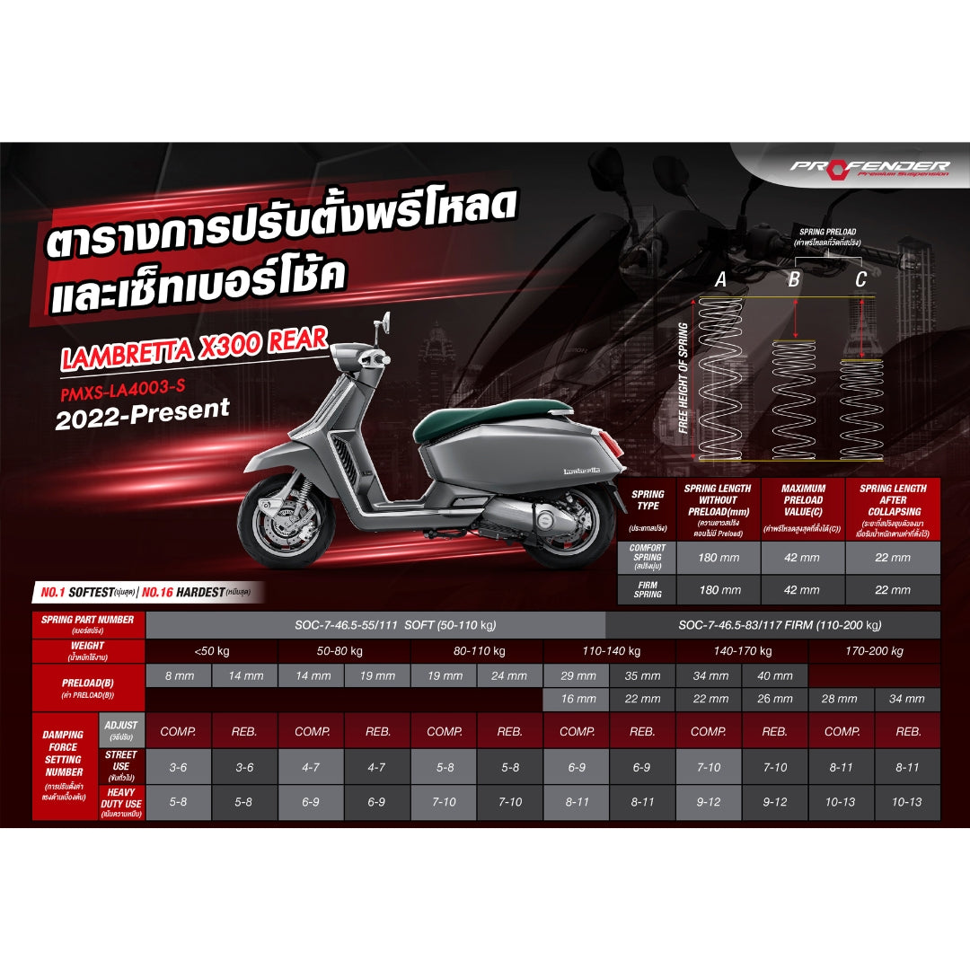 โช้ค PROFENDER FLASH Series  LAMBRETTA X300 REAR  สีดำ