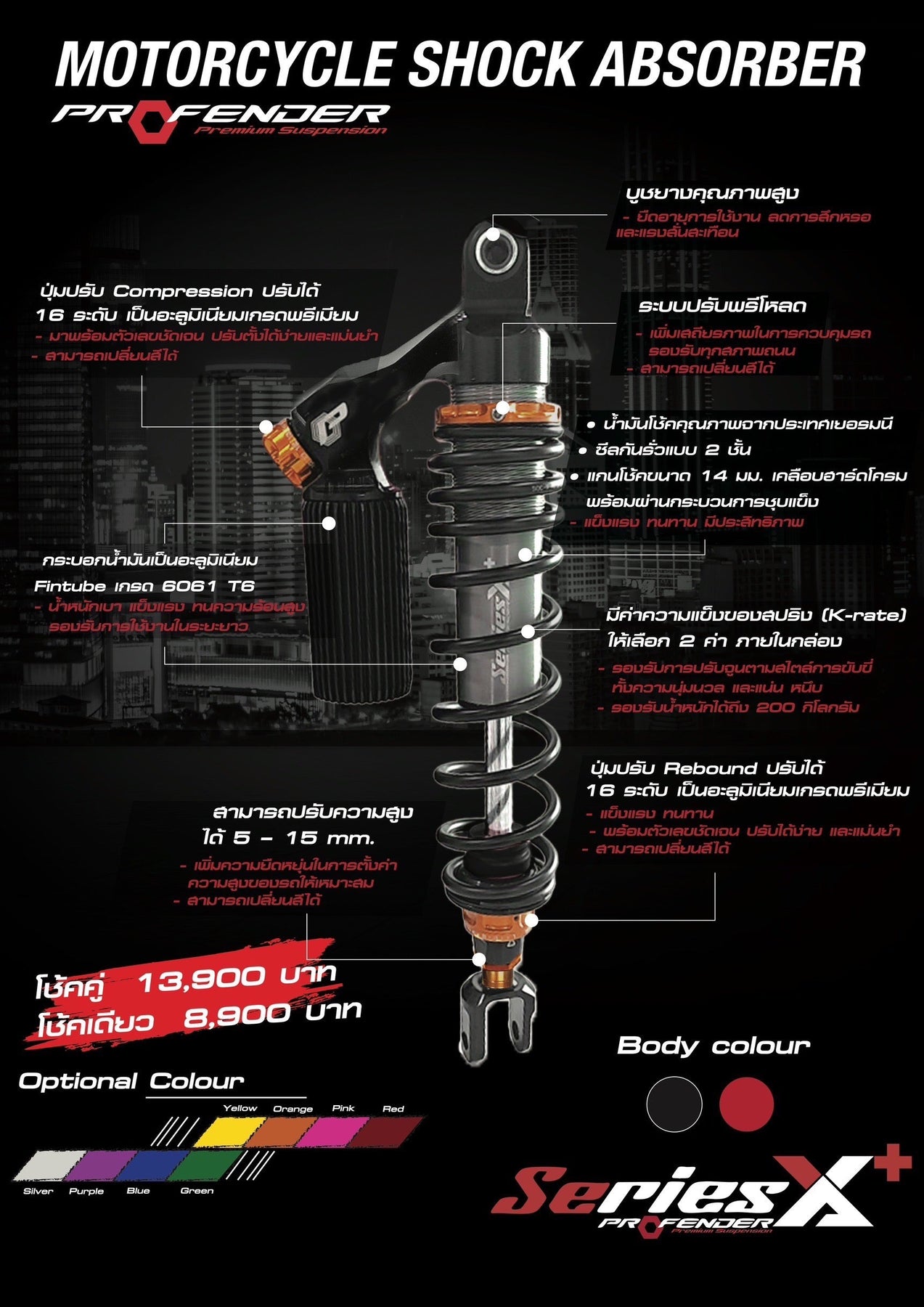 - โช้คเดี่ยว : 8,900 บาท