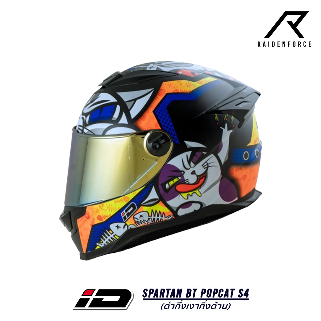หมวกกันน็อค ID HELMET SPARTAN BT Popcat S4 ดำกึ่งเงากึ่งด้าน