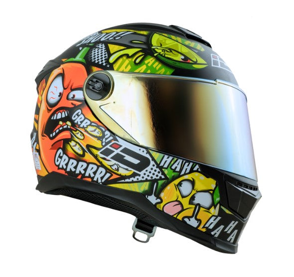 - มีแผ่นปิดใต้คาง shin curtain เก็บเสียงและกันลมย้อนเข้ามาในหมวก